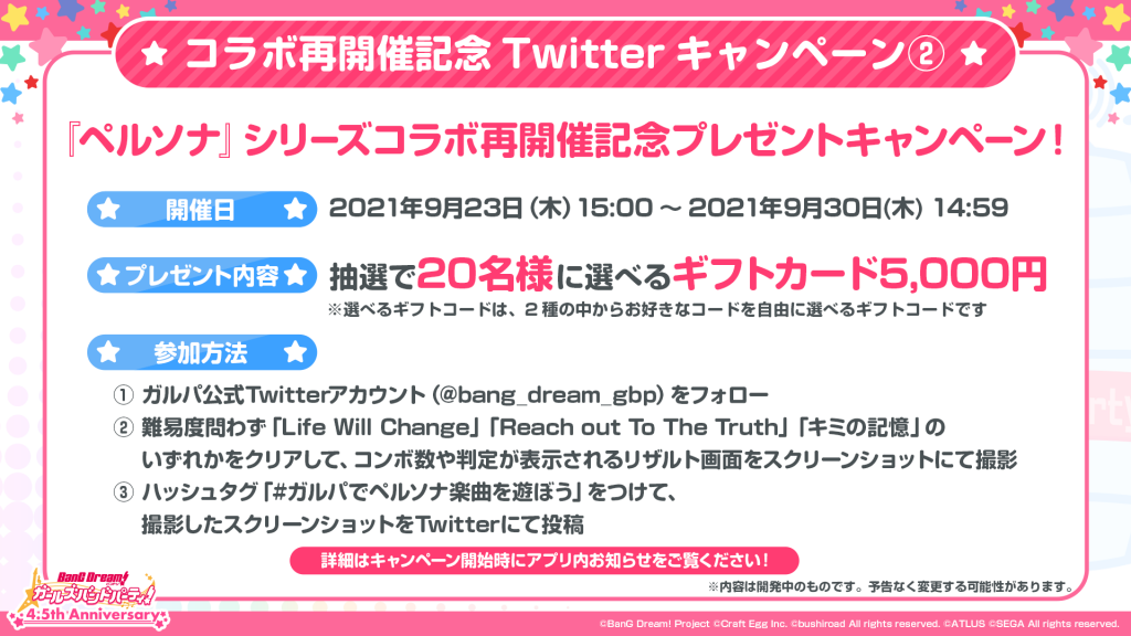 ©BanG Dream! Project ©Craft Egg Inc. ©bushiroad All rights reserved. ©ATLUS ©SEGA All rights reserved.