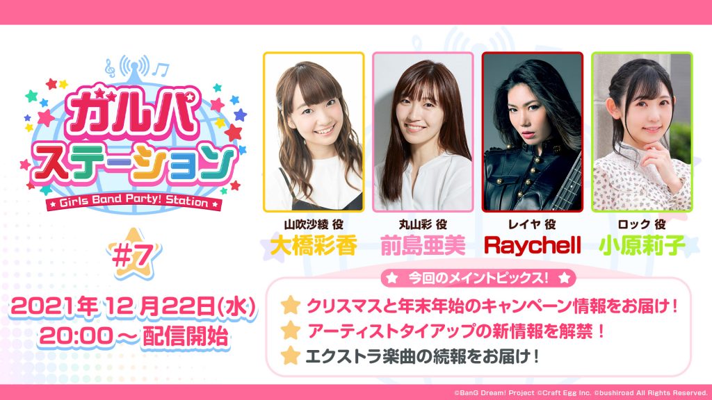 今回はアーティストタイアップの新続報やエクストラ楽曲の続報、クリスマスと年末年始に予定しているキャンペーン情報などガルパの最新情報を発表予定です!