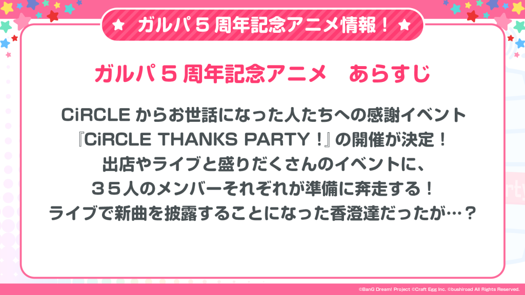 ガルパ5周年記念アニメ 放送概要