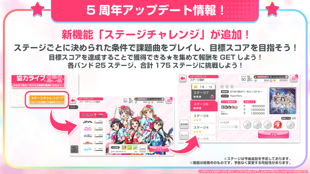 ステージごとに決められた条件で課題曲に挑戦する「ステージチャレンジ」機能が追加されます。