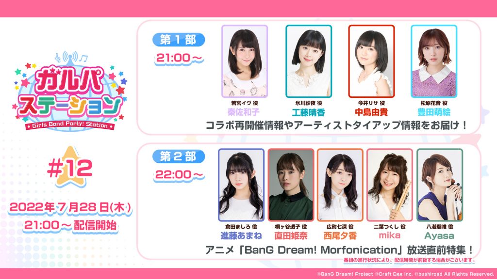 7月28日に「バンドリ! ガールズバンドパーティ!」に関する最新情報をお届けする情報番組「ガルパステーション #12」の放送が決定!