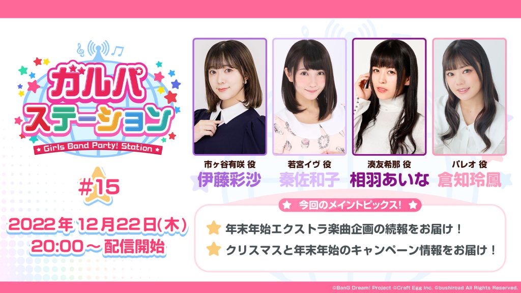 12月22日に「バンドリ! ガールズバンドパーティ!」に関する最新情報をお届けする情報番組「ガルパステーション #15」の放送が決定!