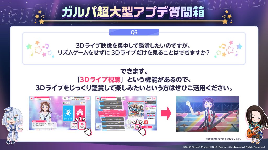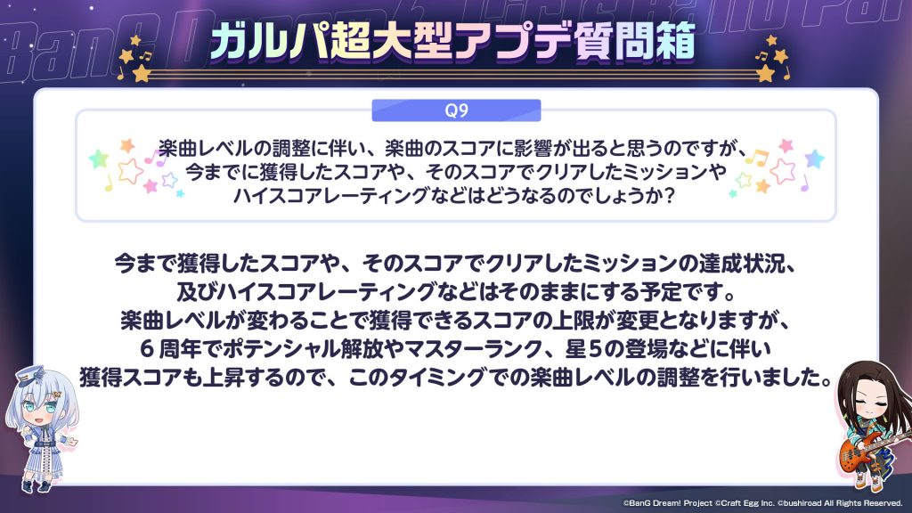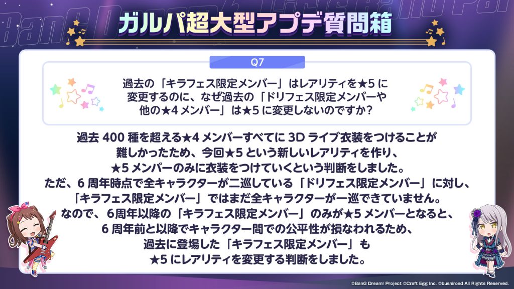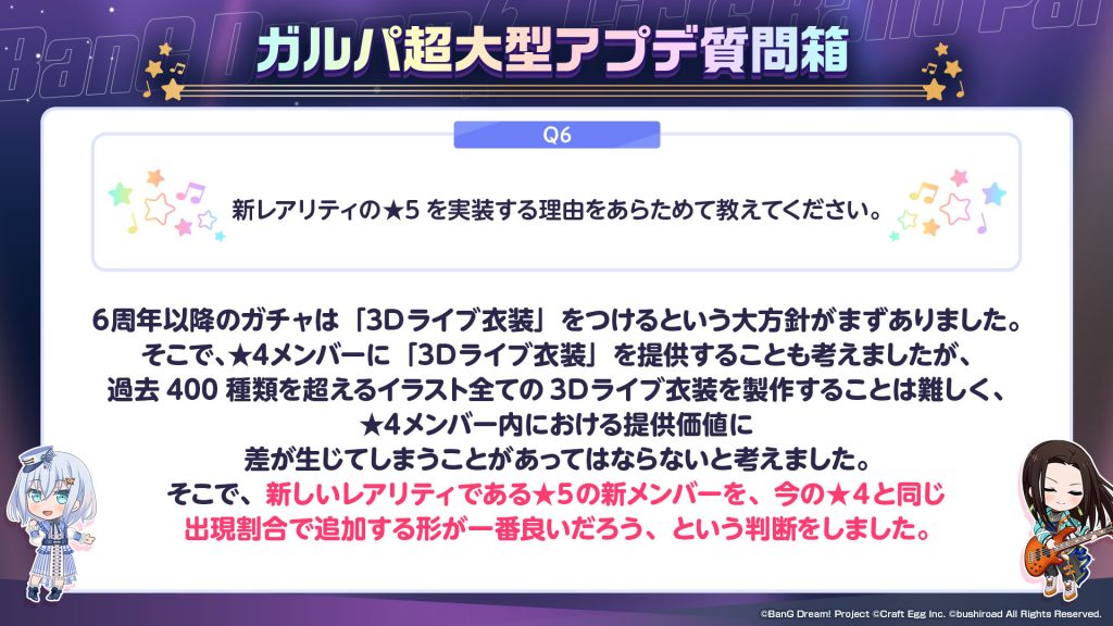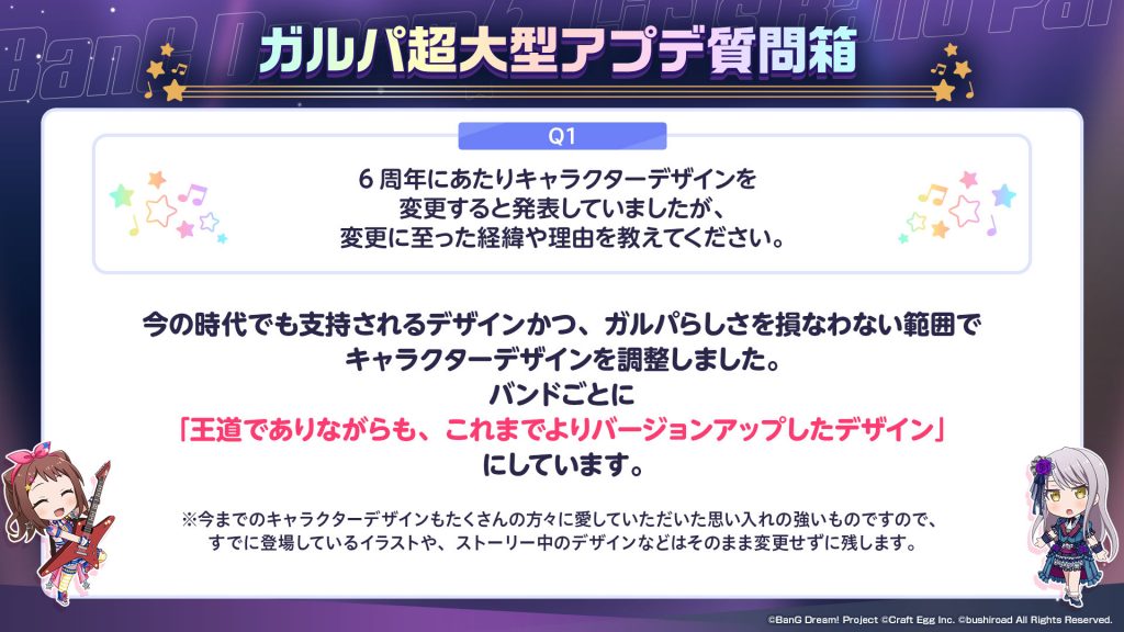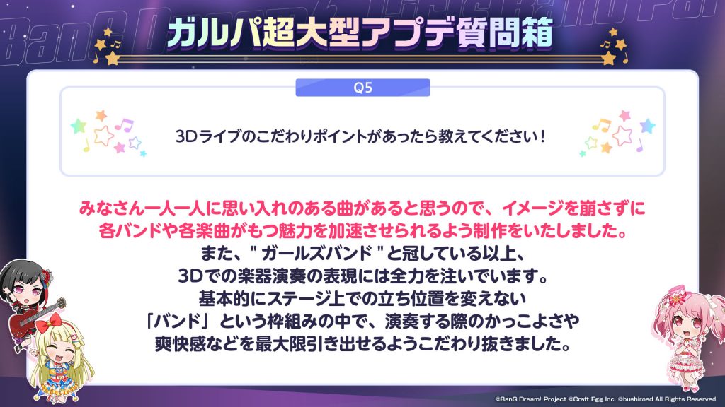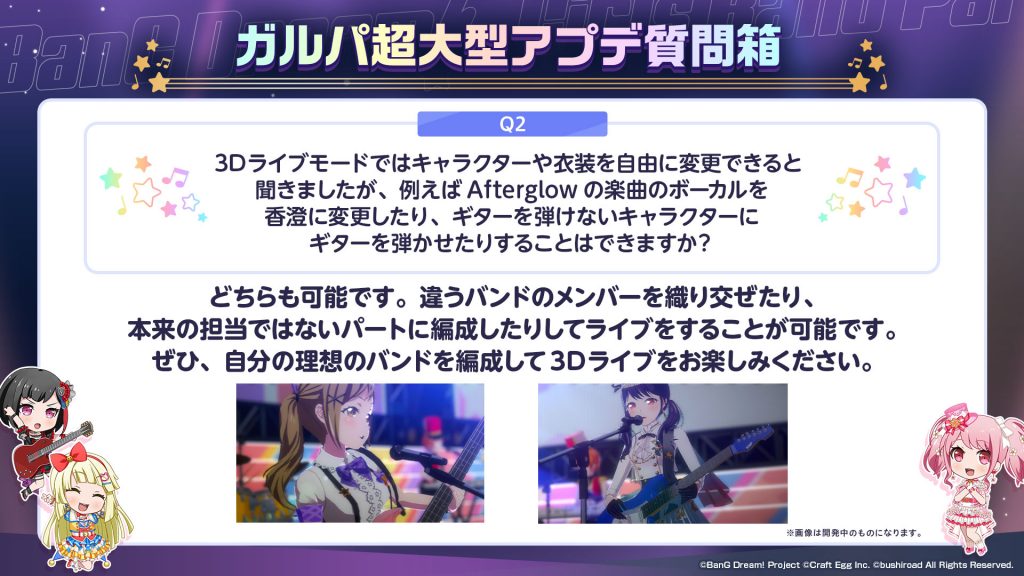 みなさんからいただいた『ガルパ超大型アプデ質問箱』についてはまた別の形でお答えさせていただければと思っております。