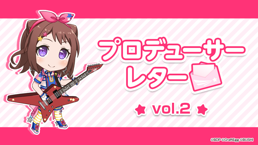 次回は2月15日(水)にプロデューサーレターvol.3を投稿予定です。今後とも『バンドリ! ガールズバンドパーティ!』をよろしくお願いいたします。