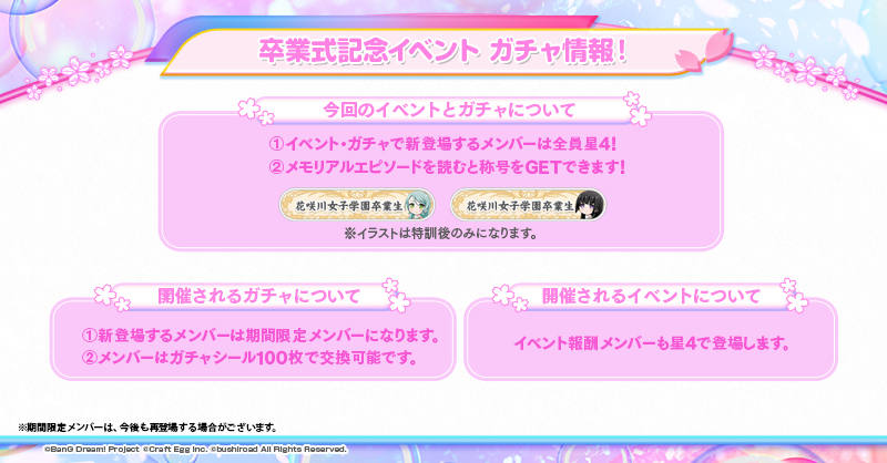 卒業式記念イベント・ガチャ情報