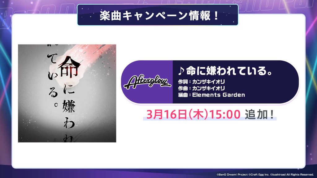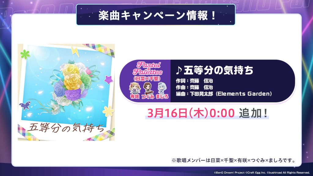 次回は3月18日(土)に投稿予定です。今後とも『バンドリ! ガールズバンドパーティ!』をよろしくお願いいたします。