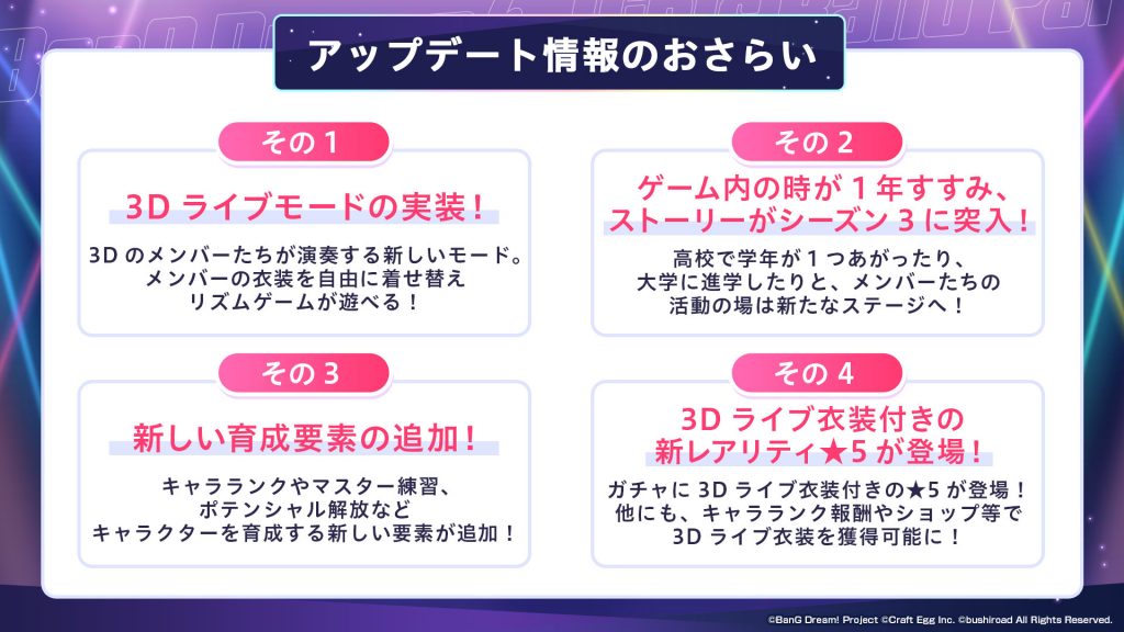 超大型アップデートまで残り2週間となり、運営一同みなさんに楽しんでもらえるガルパをお届けできるよう準備を進めております。