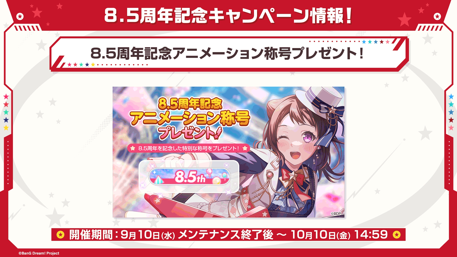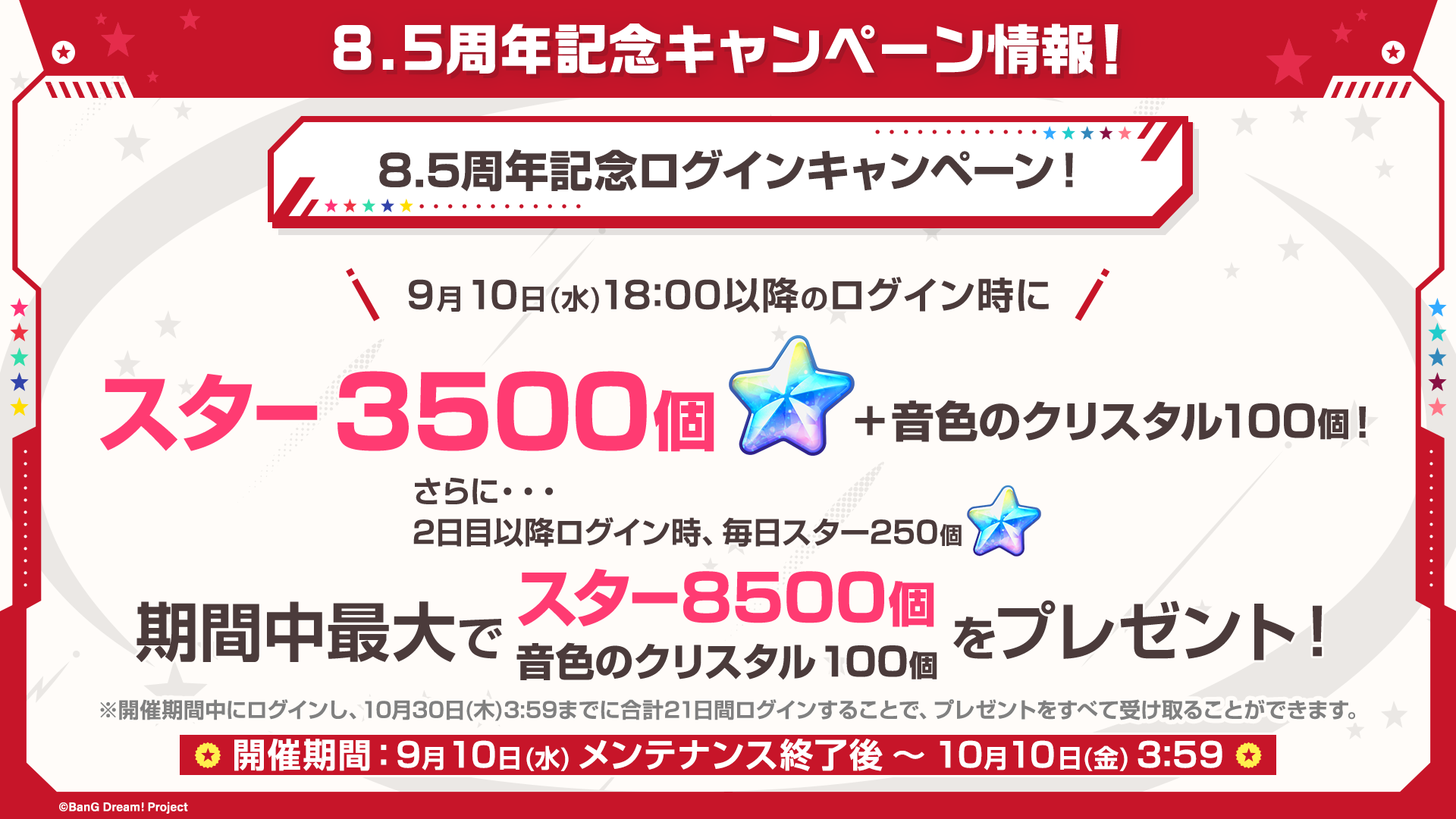 9月10日(水)メンテナンス後より、8.5周年をより盛り上げるための各種キャンペーンを実施いたします。