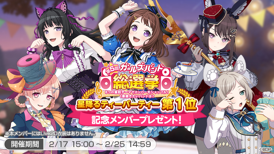 第5回ガールズバンド総選挙 星降るティーパーティー第1位記念スタンププレゼント!