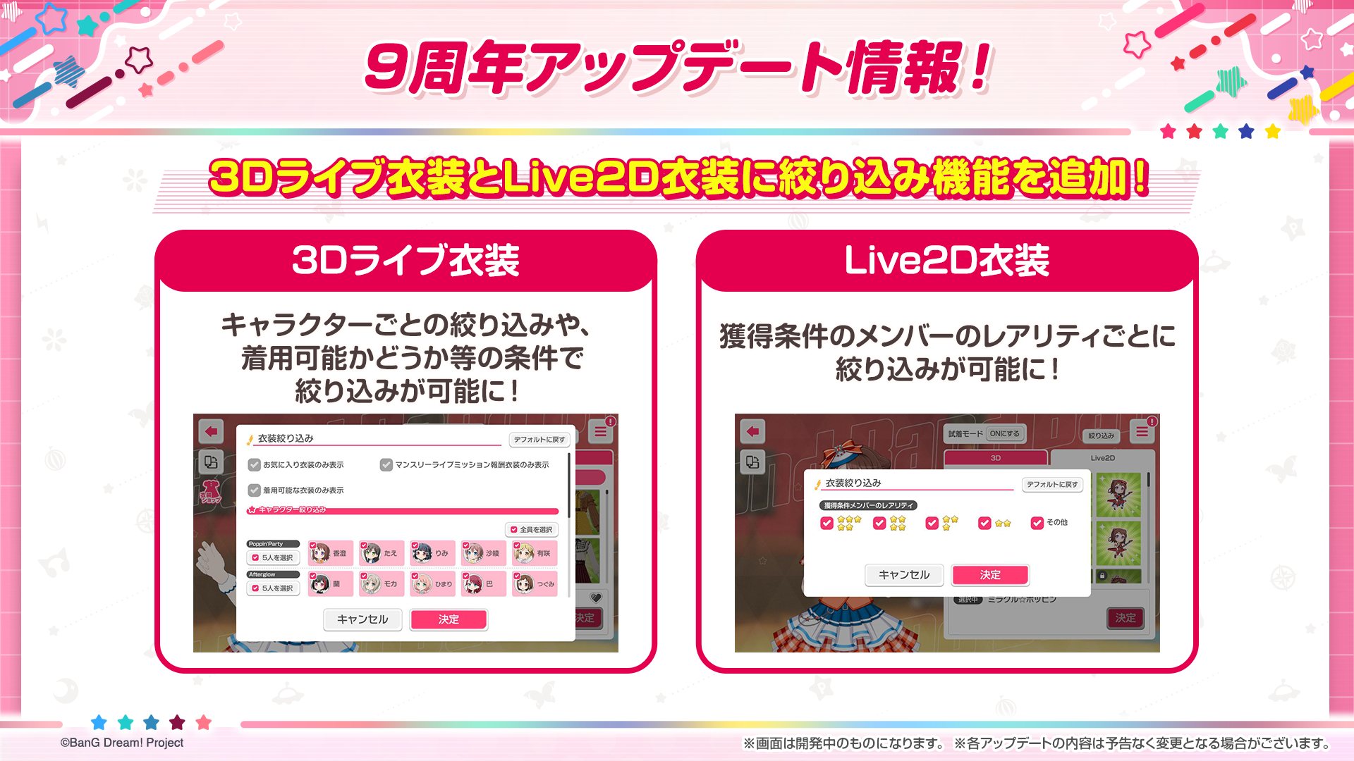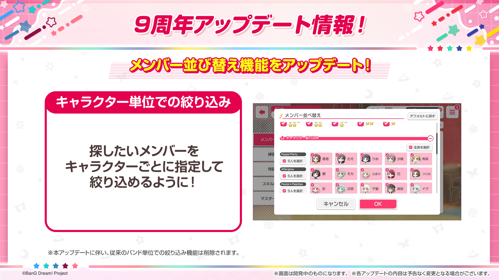 3月14日に行われるガルパ9周年を記念したアップデートで、さまざまな機能を追加予定です。